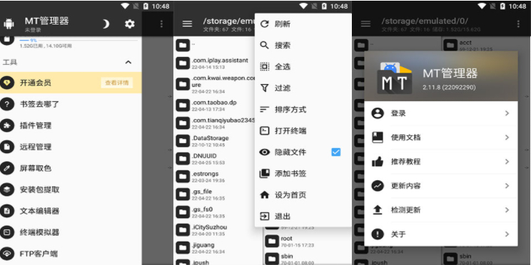 – 文件复制、移动、创建软链接、重命名、删除、创建文件(夹),文件批量操作。获取 Root 权限后可访问系统目录,挂载文件系统为读写,修改文件权限和所有者。