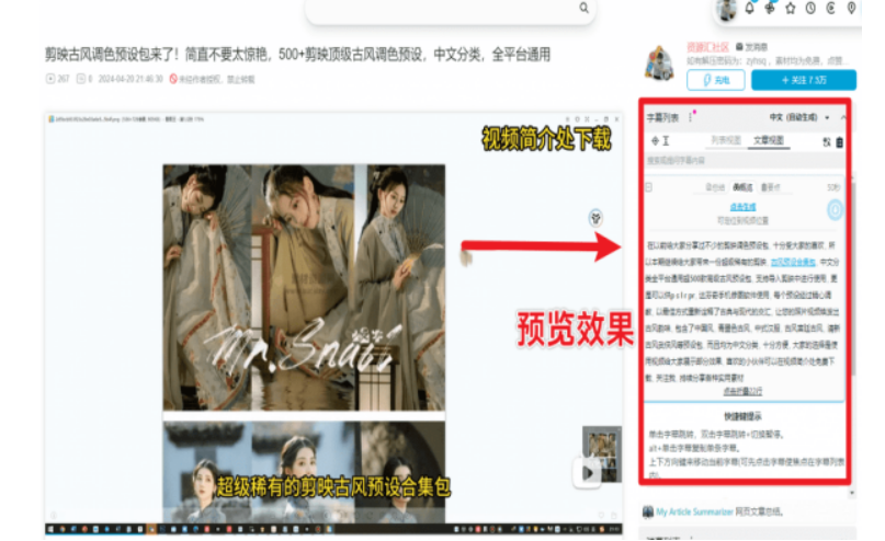 它可以显示视频对应的字幕列表,点击可跳转视频对应位置,比较适合知识学习类的视频。