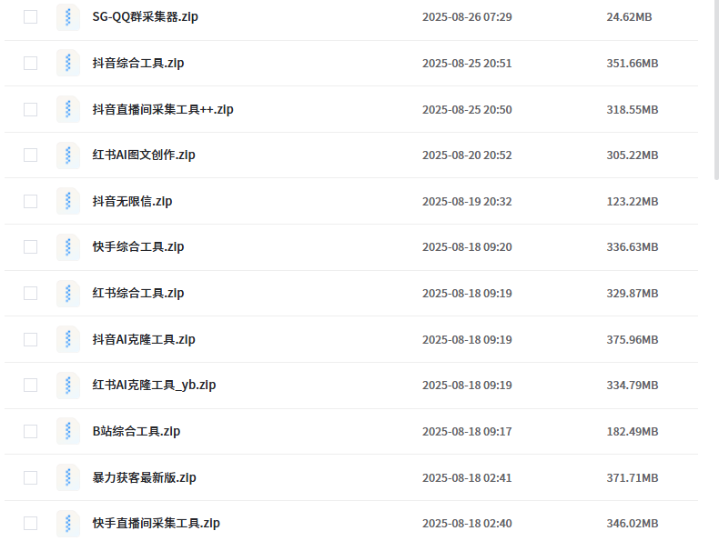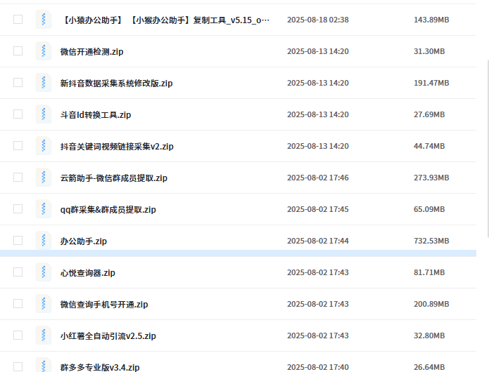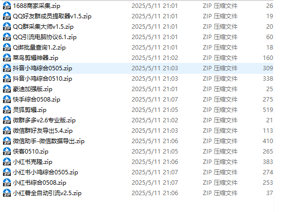 市面上很多工具都是原包加密后再开始卖的,我这只要能有原包都直接给大家,也有一些不错的工具是带了作者联系方式的,大家自行判断,我这把现有的工具给大家截图放到下面。懂行的可能随便一个工具加密就能赚翻了。