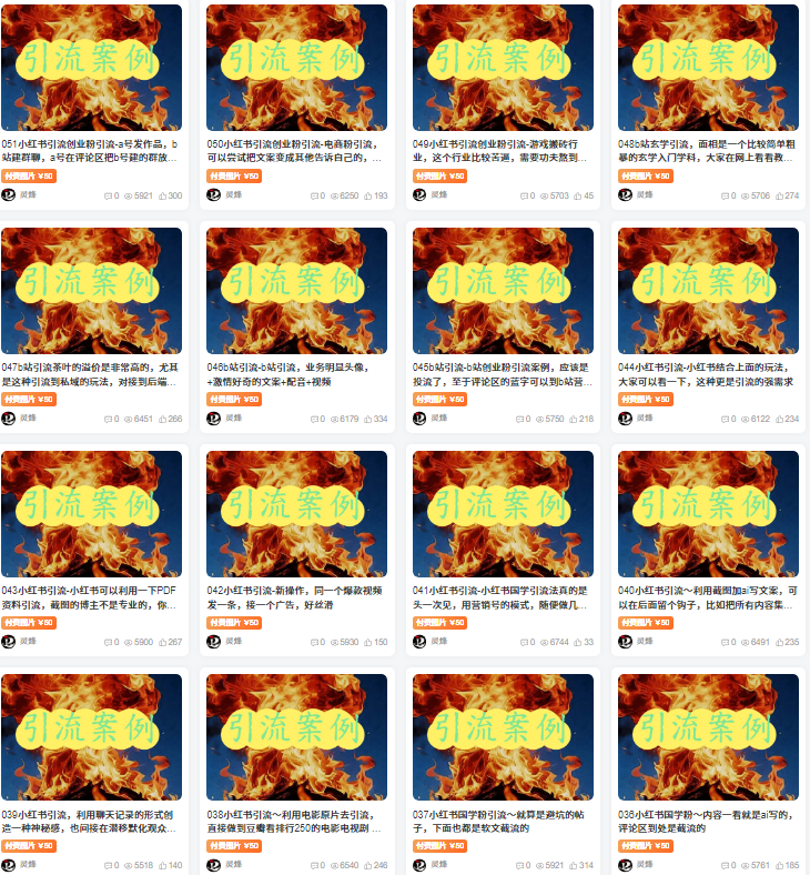 现在引流案例库里面有100多个引流案例,这段时间忙完也会陆续更新了。做事最简单的方法就是直接抄同行,我先给你找大量的同行。目前的案例库是:b站,小红书引流案例。