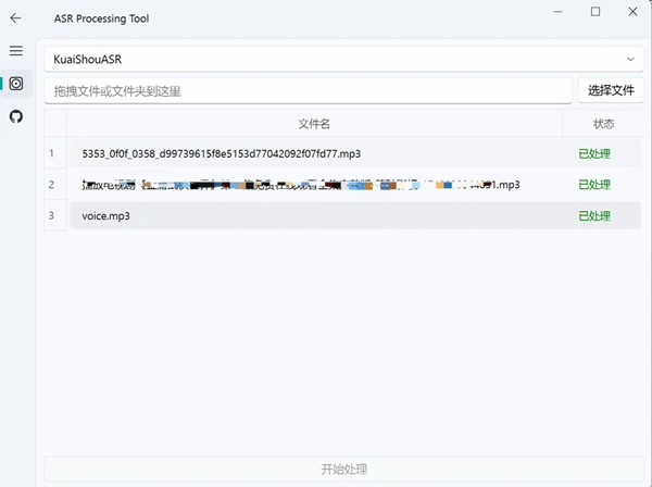 - 开始处理:点击“开始处理”按钮,程序将自动开始转换,并在完成后在原音频目录生成.srt或.txt字幕文件。(默认保持 3 个线程运行)