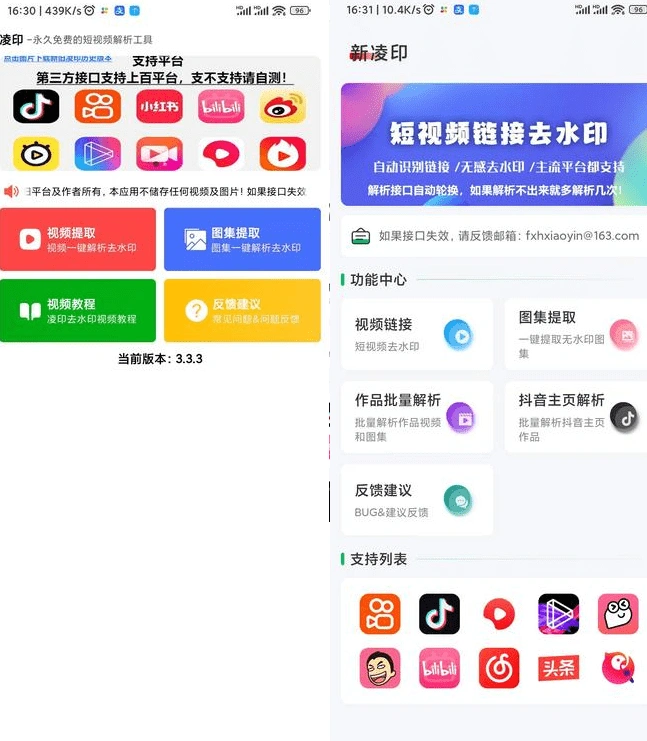 - 支持解析主流短视频视频,无水印解析,抖音、快手、小红书等