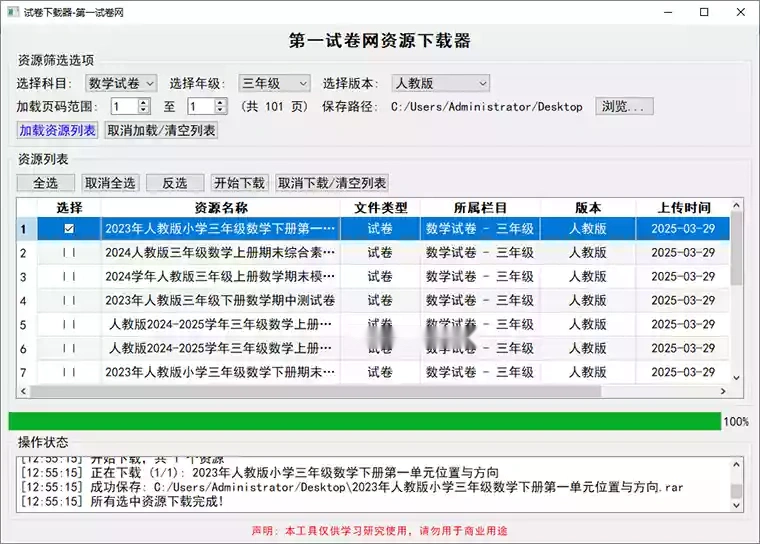 当前位置: 首页全部分类软件板块正文 一款简易的试卷下载器 支持下载小学、初中、高中的全科目试卷,支持选择试卷版本 如人教、苏教、北师大等,工具可批量下载,下载后的试卷全是压缩包 每份试卷自带答案。 声明:本站所有文章,如无特殊说明或标注,均为本站原创发布。任何个人或组织,在未征得本站同意时,禁止复制、盗用、采集、发布本站内容到任何网站、书籍等各类媒体平台。如若本站内容侵犯了原著者的合法权益,可联系我们进行处理。 大华 海报 链接